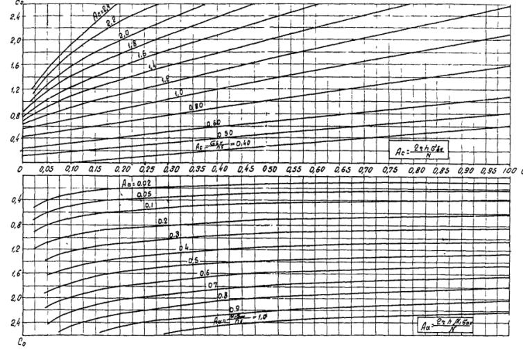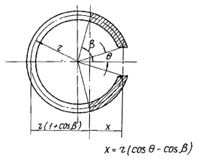 2.9. Для определения напряжений в сечениях трубы предварительно определяют центральный угол 2b, ограничивающий сжатую зону (см. рис. 1). Величину b определяют в зависимости от a1 и С0 по графикам, приведенным в приложении 4 на рис. 11. В формуле (7) bб - определяется по табл. 3 главы СНиП II-В.7-67 или по опытным данным в зависимости от средней температуры сечения стенки