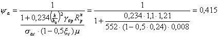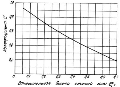 Значение коэффициента ya в формуле (23) определяют по формуле: Значение jбр находят по табл. 3 главы СНиП II-В.7-67 или по опытным данным в зависимости от температуры бетона на уровне арматуры. Коэффициент yа должен приниматься не более 1 и не менее значения, определяемого по формуле: где k и С вычисляют по формулам соответственно: