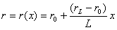 Рис. 8. Схема ствола дымовой трубы Рис. 9. Схема разбивки и загружения ствола трубы Рис. 10. Расчетная схема к определению M(x) Если принять M(x) = Pm(x) то функция m(x) задана численно в точках разбивки. Вместо уравнения (58) используют зависимость (рис. 10): m0(x) определена при первом задании формы изогнутой оси (см. выше). Эквивалентные сосредоточенные силы определяют по формуле: В расчетной схеме заделка в точке r заменяется на свободный край, а свободный край в точке 0 - на заделку. Определяем моменты в такой консоли от нагрузок принимая, что плечо каждой из них равно расстоянию до свободного конца расчетной консоли L - xi. Находим значение момента m1(i) вызванного действием сил W0(i) и по формуле (65) определяем m1(i) = Z1(i). Далее, поскольку Z1(i) прогибы первого приближения известны, определяется m(x)/y(x), затем определяются согласно формуле (66) нагрузки и строится от них новая эпюра моментов, то есть m2(i) и т.д. Повторяя этот процесс, исходя из кривых m1(i)/y, m2(i)/y и т.д., получим более точные формы кривых прогибов: