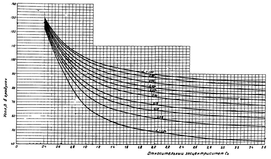 В нашем случае I = 1, a Pкp - критический параметр нагрузки от собственного веса. Запас устойчивости определяется отношением критического параметра Pкp к весу верхнего участка трубы Р (см. рис. 9). Приложение 4Рис. 11. Значения угла b для кольцевых внецентренно сжатых сечений труб