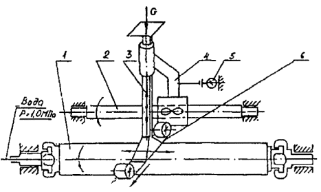 Примечания: 1. Допуск на диаметры ступенек по h1. 2. Допуск на длину по Н14. 3. Материал рабочих калибров - алюминиевый сплав. Рисунок 3. Приспособление для оценки хрупкости покрытия рукава Рисунок 4. Схема стенда испытаний пожарных рукавов на стойкость к абразивному износу: 1 - рукав; 2 - вал привода суппорта; 3 - узел размещения и подачи абразивной ленты; 4 - суппорт; 5 - счетчик двойных ходов суппорта; 6 - абразивная лента Рисунок 5. Схема стенда испытаний пожарных рукавов на стойкость к контактному прожигу: 1 - рукав; 2 - калильный стержень; 3 - груз СОДЕРЖАНИЕ