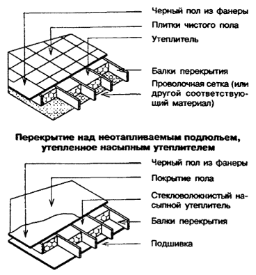 6.4.4 В случаях, когда чистый пол состоит из пригнанных деревянных досок толщиной не менее 18 мм, уложенных под прямым углом к балкам перекрытия, которые размещены с шагом не более 600 мм, черный пол может выполняться из фанеры или гипсоволокнистых листов толщиной не менее 12 мм. Такой черный пол допускается предусматривать также под покрытие чистого пола из бетонной или керамической плитки. 6.4.5 Элементы черного пола в пределах помещения должны иметь шпунтовые соединения или стыковаться на деревянных брусках сечением 38´38 мм, прибитых гвоздями к элементам каркаса. 6.4.6 При монтаже черных полов должны соблюдаться следующие требования: - черный пол из фанеры должен укладываться так, чтобы волокна древесины в верхнем слое были перпендикулярны балкам перекрытия, а соединения, параллельные этим балкам, располагались вразбежку; - черный пол из древесностружечных плит должен монтироваться так, чтобы короткая сторона плит была перпендикулярна балкам перекрытия, а соединения, параллельные этим балкам, располагались вразбежку; - черный пол под упругое покрытие чистого пола должен прибиваться к опорам строительными гвоздями трефовыми с перемычкой по ГОСТ 4028; - черный пол из пиломатериалов должен укладываться под углом не менее 45° к балкам и полностью опираться концами на сплошную опору; пиломатериалы для черного пола должны иметь одинаковую толщину и быть шириной не более 180 мм. 6.4.7 Верхняя поверхность и все края черного пола из материалов на древесной основе, устраиваемого в ванных комнатах, кухнях, постирочных и других помещениях, где возможно замачивание пола, должны обрабатываться гидрофобизирующими веществами для защиты от увлажнения. Таким же образом должны обрабатываться верхняя поверхность и края всех элементов черного пола заводского изготовления из материалов на древесной основе, если не обеспечивается надежная защита их от увлажнения в процессе транспортирования и хранения. 6.5 Подшивка потолка 6.5.1 Для подшивки потолка могут использоваться листовые и плитные обшивочные материалы, а также пиломатериалы, виды и требования к минимальной толщине которых указаны в таблице 7.3. Примечание - При использовании данных таблицы 7.3 следует вместо шага стоек учитывать шаг балок. 6.5.2 В случаях, когда размеры листов или плит подшивки меньше расстояний между балками перекрытия, а также в случаях применения для подшивок материалов с недостаточной жесткостью, подшивки должны крепиться к балкам по обрешетке, которая должна удовлетворять требованиям, указанным в таблице 6.3. Таблица 6.3