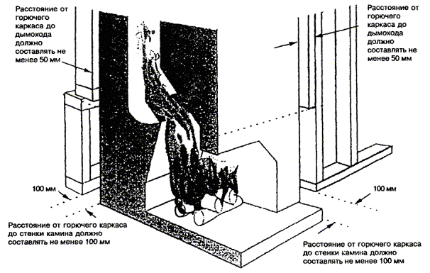 9.4.7.1 Расстояние между краем верха плиты и стеной из негорючих материалов должно быть не менее 50 мм.