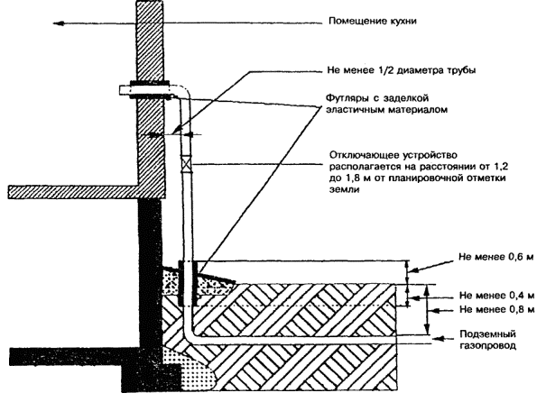 9.2.2 Подводящий газопровод низкого давления непосредственно у ввода в дом должен быть оборудован отключающим устройством на высоте не более 1,8 м от поверхности земли (рисунок 9.1).