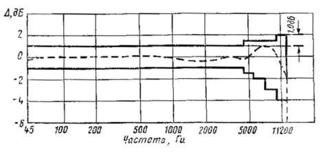 относительная влажность и температура окружающего воздуха обеспечивают затухание звука в третьоктавной полосе центральной частотой 8 кГц не более 12 дБ/100 м. Если для получения относительной влажности измерение температуры влажного и сухого воздуха производится прибором с погрешностью ±0,5°С, то затухание звука в третьоктавной полосе центральной частотой 8 кГц должно быть не более 14 дБ/100 м;