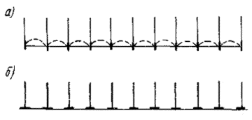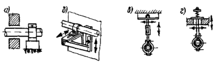 Рис. 17. Полунезависимая прокладка: а - скользящие и катковые опоры; б - подвески горизонтально расположенных трубопроводов без регулируемых тяг