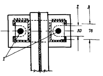 Определяем проектный размер зазора между болтами колонны и отверстиями в ферме (рис. 21). Рис. 21. Схема сопряжения ферм с колонной: 1 - анкера колонны диаметром 22 мм; 2 -