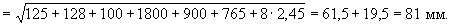 где Dро = 5 мм (по табл. 7 приложения 2); Dуо = 8 мм (no табл. 9 приложения 2); Dрэ = 5 мм (по табл. 7 приложения 2); Dув = 30 мм (по табл. 10 приложения 2); Dиб = 6 мм (по табл. 5 и 6 приложения 1); Dуб = 30 мм (по табл. 9 приложения 2). n - количество промеров 20-метровой лентой; при длине цеха 126 м n = 6;
