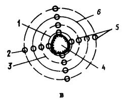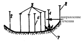 a - на водотоках; б - на водоеме (до 3 км от берега); в - на водоеме (более 3 км от берега); 1 - основной створ, 2 - фоновый створ; 3 - дополнительные створы; 4 - подводный карьер; 5 - скоростная вертикаль; 6 - контрольный створ; 7 - выпуск осветленных сбросных вод Черт. Приложение 5Обязательное Рыбохозяйственные исследования1. Рыбохозяйственные определения для оценки акватории района производства гидромеханизированных работ [14]. По фитопланктону: общая численность и видовой состав клеток 103 кл/см3 (кл/мг); общее число видов; общая биомасса, мг/дм3 (мг/л); численность основных групп 103 кл/см (кл/мг); биoмасса основных групп, мг/дм3 (мг/л); число видов в группе; массовые виды и виды-индикаторы сапробности (наименование, % от общей численности, сапробность). По зоопланктону: общая численность и видовой состав организмов, экз./м3; общее число видов; общая биомасса, мг/м3; численность основных групп, экз./м3, биомасса основных групп, мг/м3; число видов в группе; массовые виды и виды-индикаторы сапробности (наименование, % от общей численности, сапробность). По зообентосу: общая численность и видовой состав, экз./м2, общая биомасса, г/м2; общее число видов; количество групп по стандартной обработке; число видов в группе; биомасса основных групп, г/м; численность основных групп, экз./м2; массовые виды и виды-индикаторы сапробности (наименование, % от общей численности, сапробность). По ихтиофауне: видовой состав, интенсивность нереста и эффективность использования района производства гидромеханизированных работ в качестве нерестилищ; концентрация рыб по сезонам; промысловые показатели (вылов рыбы в районе гидромеханизированных работ), ц/га; возрастная структура стада рыб; вертикальное распределение рыб; миграционное, нагульное и зимовальное значение района производства гидромеханизированных работ.