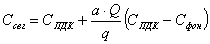 Ссвг - содержание взвеси в сбросной воде гидромеханизации на водосбросе, мг/л; Сфон - фоновая концентрация взвеси, мг/л; Р - содержание фракций d менее 0,05 мм в карьерном грунте (или в составе сбросных вод гидромеханизации), доли; n - степень разбавления сбросных вод гидромеханизации при смешении их с водой водоприемника;