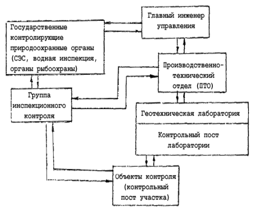 1 - для земснарядов; 2 - для вспомогательных средств Черт. Приложение 9Рекомендуемое Структурная схема организации службы технологического контроля состава и свойств воды водного объекта на уровне строительного управления
