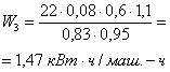 Принимаем, что двигатель находится 40% общего времени в работе под нагрузкой и 60% времени на холостом ходу (по данным хронометража). Исходя из этого средневзвешенный коэффициент использования мощности двигателя за период, когда он включен, составляет: