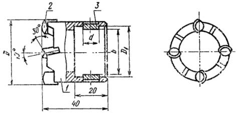 1 - корпус; 2 - пластинка твердосплавная по технической документации, утвержденной в установленном порядке; 3 - шип Размеры в мм