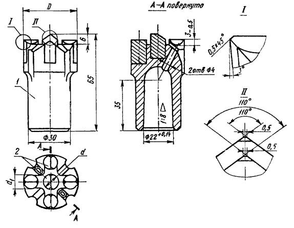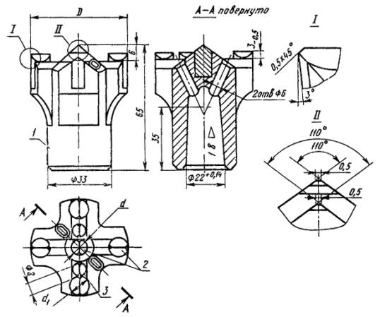 Примечание. Размеры коронок, заключенные в скобки, применять не рекомендуется. Пример условного обозначения крестовой коронки типа ККЦ1 диаметром 40 мм: Коронка ККЦ1-40 ГОСТ 17015-71 4. Технические требования - по ГОСТ 17017-71. |