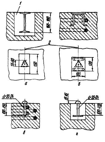 5. Для возможности удаления инвентарных домкратных устройств и опускания установочных гаек их необходимо перед подливкой выгородить. Образовавшиеся после их удаления пустоты заполняют раствором той марки, которую использовали для подливки.