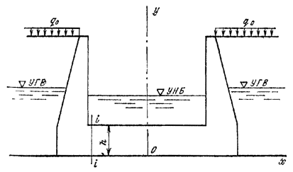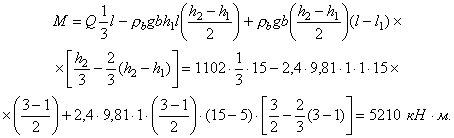 Q = 1/2rwgbH2 = 1/2×1×9,81×1×152 = 1102 кН;