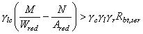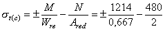 glcgnsmt = 1,0×1,2×0,264 = 0,318 МПа < gсgb4gb5Rbt = 1×0,9×0,925×0,9 = 0,75 МПа. В центре тяжести сечения