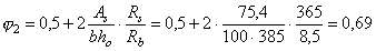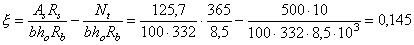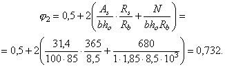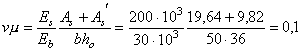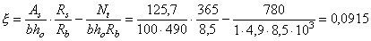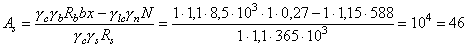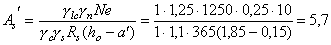 Так как х = 9,2 см > 2a/ = 8 см и x < xRho = 0,6×36 = 21,6 см, продольную арматуру подбираем по формуле (32)