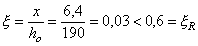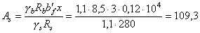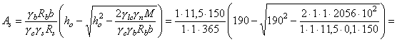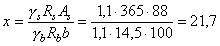 = 0,05967 м = 6 см. Так как x = x/hо = 6/21 = 0,286 < xR = 0,6, площадь растянутой арматуры вычисляем по формуле (31)