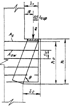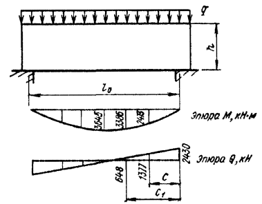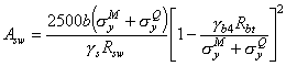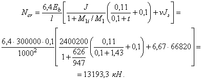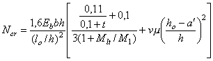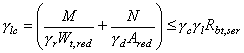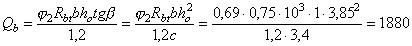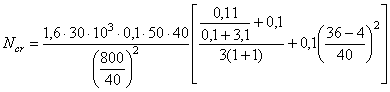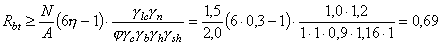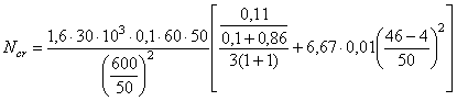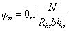 При определении коэффициента gh, предполагаем, что рассматриваемая конструкция изготовлена из бетона класса В15 (Rbt = 0,75 МПа). Тогда с = 7,3 см; gh = 1 + 7,3/44,5 = 1,16. Так как сечение элемента прямоугольное, то gsh = 1,0. Уравнение (18) для элемента прямоугольного сечения можно представить в виде