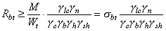 3.5 (5.5). При расчете гибких бетонных элементов (при lо/b > 12 или lо/r > 35) учитывается влияние длительного действия нагрузки на несущую способность конструкции в соответствии со СНиП 2.03.01-84 [2] с введением расчетных коэффициентов, принятых в СНиП 2.06.08-87 [1]. Примеры расчета к пп. 3.1-3.5Пример 2. Дано. В бетонной плите (gb = 0,9) прямоугольного сечения (gsh = 1,0) шириной b = 200 см и высотой h = 40 см, являющейся элементом гидроэнергетического сооружения (gс = 1,0) II класса (gn = 1,20), при действии нагрузок основного сочетания (glс = 1,0) возникает изгибающий момент М = 0,06 МН×м (6,12 тс×м). Требуется подобрать класс бетона по прочности на сжатие для изготовления плиты. Расчет. Решим уравнение (4) относительно Rbt: