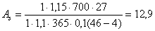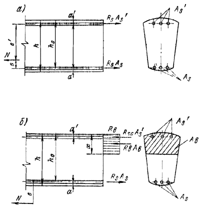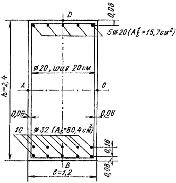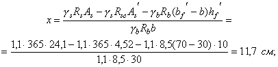 Так как х = 11 см < 2a/ = 30 см, площадь сечения растянутой арматуры определяем из условия (29) без учета сжатой арматуры