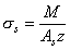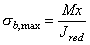 где SAo = 0,4×0,2×0,38 + 0,15×0,28×0,14 = 0,0363 м3 - статический момент относительно нейтральной оси части площади поперечного сечения балки, расположенной выше (ниже) точки, в которой определяются касательные напряжения; bA - ширина сечения на уровне рассматриваемой точки. smt = smc = txy = ± 0,586 МПа. По формуле (10)