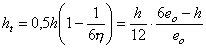 Растянутая зона сечения I-I рассмотренной конструкции не отвечает условию прочности. Проверим далее прочность сжатой зоны в предположении образования трещин в растянутой зоне. Вначале уточним усилия от противодавления в расчетном сечении. Для внецентренно сжатого элемента прямоугольного сечения глубина трещины lt может быть определена по формуле lt = 0,5h(6h - 1). В рассматриваемом примере lt = 0,5×2(6×0,375 - 1) = 1,25 м. Эпюра распределения гидростатического давления в сечении с трещиной представлена на рис. 6, б. Усилия в сечении I-I от действия противодавления равны: