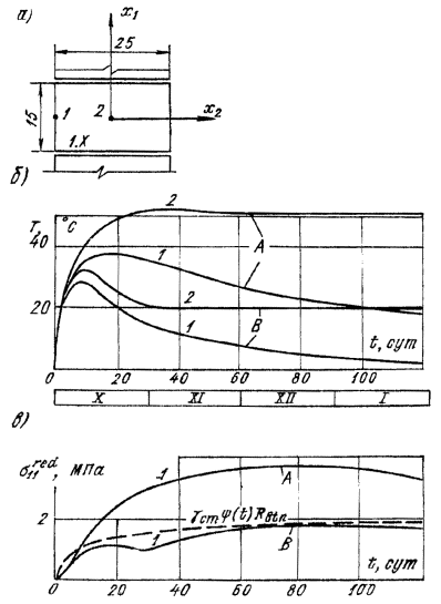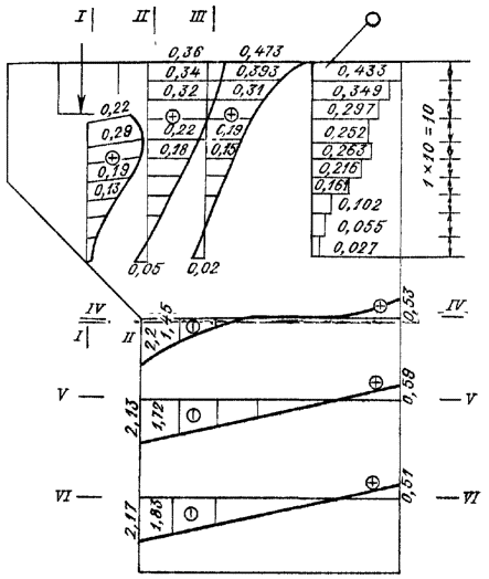 Проверяем трещиностойкость сечений. Для этого сначала принимаем эпюру противодавления как для трещиностойких сечений по линейному закону при a2b = 1. Для сечения I-I