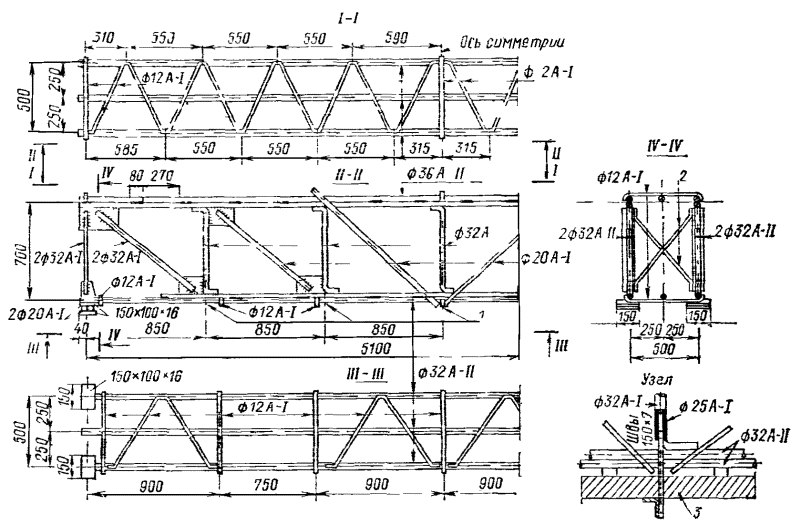 Принимаем Æ 36 A-III-через 40 см (25,4 см2). Подбор продольной арматуры можно произвести и с помощью табл. 17. Вычисляем значение am по формуле (35)