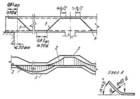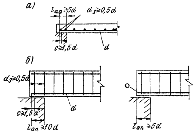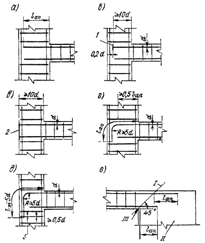 Арматура2.17 (2.16). Для армирования железобетонных конструкций гидротехнических сооружений следует применять арматурную сталь, отвечающую требованиям соответствующих государственных стандартов или утвержденных в установленном порядке технических условий. Для конструкций без предварительного напряжения рекомендуется преимущественно применять горячекатаную стержневую арматуру периодического профиля класса A-III и холоднотянутую проволоку обыкновенную периодического профиля класса Вр-1; для поперечной арматуры, а также в качестве продольной, если другие виды ненапрягаемой арматуры не могут быть использованы, допускается применять горячекатаную арматуру периодического профиля класса A-II и гладкую класса A-I. Для закладных деталей и соединительных накладок применяется, как правило, прокатная углеродистая сталь. Допускается при надлежащем обосновании применять арматуру других видов. Расчетные характеристики этой арматуры следует принимать по СНиП 2.03.01-84 [2]. 2.18. Выбор арматурной и прокатной стали следует производить в зависимости от температурных условий эксплуатации конструкций и характера их нагружения в соответствии с прил. 3. При возведении конструкций в условиях расчетной зимней температуры наружного воздуха ниже минус 40 °С с арматурой, допускаемой для использования только в отапливаемых зданиях, должна быть проверена несущая способность конструкции на стадии ее возведения при расчетном сопротивлении арматуры с понижающим коэффициентом gs = 0,7 и расчетной нагрузкой с коэффициентом надежности по нагрузке gf = 1. 2.19. Для монтажных (подъемных) петель элементов сборных конструкций должна применяться горячекатаная арматурная сталь класса Ас-II марки 10ГТ и класса A-I марок ВСт3сп2 и ВСт3пс2. При монтаже конструкции при расчетной зимней температуре ниже минус 40 °С для монтажных петель не допускается применение стали марки ВСт3пс2. 2.20 (2.17). Нормативные и расчетные сопротивления арматуры следует принимать по табл. 10. Таблица 10(7)