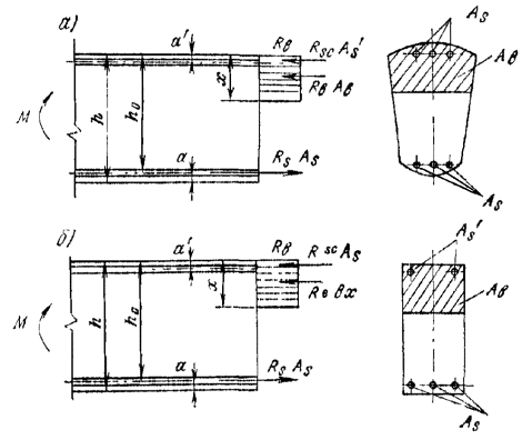 Найдем высоту сжатой зоны сечения в соответствии с рис. 6-2. Для этого определим