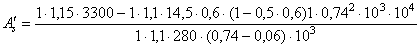 Так как x = 47 см > xRho = 0,6×74 = 44,4 см, поставим сжатую арматуру класса A-II. Примем а¢ = 6 см. Площадь сечения сжатой арматуры рассчитываем по формуле (33)