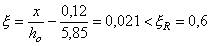 = 0,375 От совместного действия гидростатического давления и противодавления в сечении I-I имеют место усилия: N = 1,5 - 0,409 = 1,091 МН; М = 0,9 + 0,202 = 1,102 МН×м. Сечение внецентренно сжато с эксцентриситетом