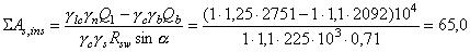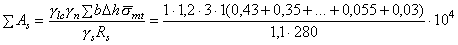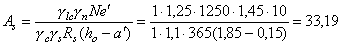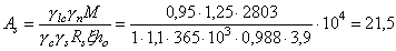 где aR = xR (1 - 0,5xR) = 0,6 (1 - 0,5×0,6) = 0,42. По табл. 17 при am = 0,058 x = 0,970 (п № интерполяции). Необходимая продольная арматура по формуле (36)