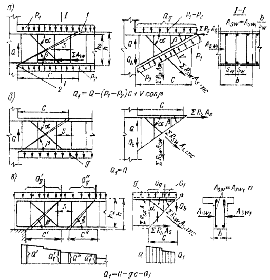 1. ОСНОВНЫЕ ПОЛОЖЕНИЯ ПО РАСЧЕТУ, НАГРУЗКИ И ВОЗДЕЙСТВИЯ1.1 (4.1). Расчеты бетонных и железобетонных конструкций следует производить по методу предельных состояний, при этом согласно СТ СЭВ 1406-78 [5] конструкции должны быть запроектированы с требуемой надежностью от возникновения всех видов предельных состояний. Бетонные и железобетонные конструкции должны удовлетворять требованиям расчета по несущей способности (предельным состояниям первой группы) при всех сочетаниях нагрузок и воздействий и по пригодности к нормальной эксплуатации (предельные состояния второй группы) - только при основном сочетании нагрузок и воздействий. Расчет по предельным состояниям, как правило, следует производить для всех стадий возведения, транспортирования, монтажа и эксплуатации конструкции. 1.2 (4.2). Бетонные конструкции рассчитываются: по предельным состояниям первой группы: по несущей способности - на прочность с проверкой устойчивости положения и формы конструкции в соответствии с разд. 3; по предельным состояниям второй группы: по образованию трещин в соответствии с разд. 7. Железобетонные конструкции рассчитываются: по предельным состояниям первой группы: по несущей способности - на прочность с проверкой устойчивости положения и формы конструкции, на выносливость при многократно повторяющейся нагрузке в соответствии с разд. 3;