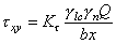Тогда gh = 1 + c/ht = 1 + 6,7/66 = 1,1. Для элементов прямоугольного сечения gsh = 1,0. По формуле (18) находим: 1,0×1×2 Проверим далее условие прочности сжатого волокна по формуле (17): 1,0×1×2 Условия прочности растянутого и сжатого волокон выполняются с большим запасом. Так как в сечении i-i действует значительная перерезывающая сила, требуется выполнить расчет прочности по главным растягивающим напряжениям для точек, расположенных на нейтральной оси и в центре тяжести сечения. Нейтральная ось расположена на расстоянии 66 см (gо = ht = 0,66 м), центр тяжести - на расстоянии 1,5 м от подошвы фундаментной плиты. На нейтральной оси: sx = 0; sу = - 0,02 МПа - по данным расчета МКЭ; So = 0,66×1,0×(1,5 - 0,33) = 0,771 м3;