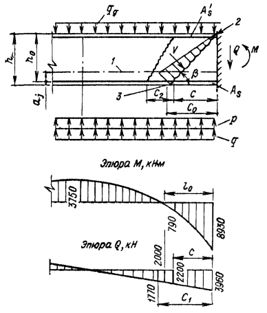 glcgnsmt = 1,0×1,2×0,586 = 0,703 МПа < gсgb4gb5Rbt = 1,0×0,9×0,935×1,2 = 1,01 МПа. Условие прочности по главным растягивающим напряжениям на уровне нейтральной оси выполняется. В точке 5: