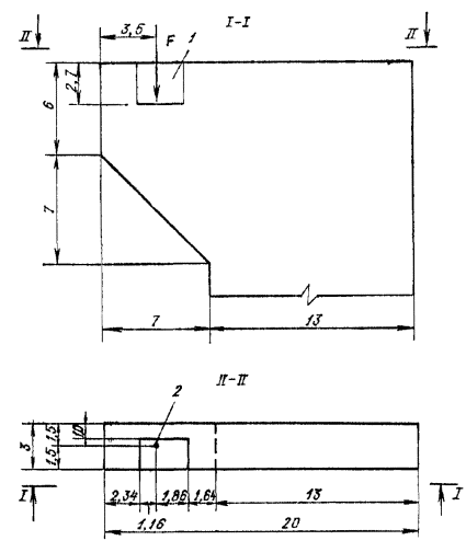 Сечение I-I внецентренно сжато с эксцентриситетом относительно центра тяжести сечения Рис. 5. Расчетная схема к примерам 4-6. Размеры, м.