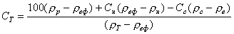 По таблице 1 в соответствующей строке находим, что раствор плотностью 1,095 г/см3 содержит 5,94 % (объемн.) твердой фазы. Или, подставляя значение rр = 1,095 г/см3 в формулу (22) (Cн = 0; Сс = 0), найдем