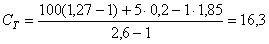 Пример 2. Раствор плотностью 1,27 г/см3 содержит 5 % (объемн.) нефти, плотность фильтрата 1,02 г/см3. Необходимо найти объемную концентрацию твердой фазы. По таблице 2 находим, что раствор плотностью 1,02 г/см3 содержит 1 % (объемн.) соли. Подставляем все данные в формулу, получим содержание твердой фазы