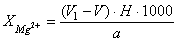 где V - объем раствора трилона Б, израсходованного на титрование, мл; Н - нормальность раствора трилона Б; а - объем исследуемой пробы фильтрата, взятой для определения, мл. Определение магния. Необходимые реактивы: комплексон III (трилон Б), 0,05 и 0,01 н. раствор; гидроксиламин солянокислый; буферный раствор, рН = 11; 20 г хлористого аммония Mn4Cl растворить в 500 мл дистиллированной воды, добавить 10 г КОН и 1 г NaOH, затем прилить 400 мл 25 %-ного Mn4OH и дистиллированной водой довести объем до 1 л; индикатор хромоген черный, сухая смесь с KCl в соотношении 1:99. Порядок проведения анализа: 1-2 мл фильтрата (такое же количество, как и для определения кальция) разбавить дистиллированной водой до 50-100 мл; ввести 5 мл буферной жидкости, 10-25 мг индикаторной смеси хромогена черного (щепотку) и гидроксиламина солянокислого - 10-15 мг; титрование провести при энергичном перемешивании раствором комплексона до перехода окраски от вишнево-красной до сине-зеленоватой; при больших содержаниях магния титрование вести 0,1 или 0,05 н., а при малых - 0,01 н. раствором комплексона; если в качестве индикатора применяется берилон, то окраска изменяется от синей до сиреневой. Концентрация ионов магния определяется по формулам: