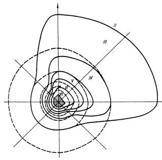 - - - -               - границы зон с различной СЗА при круговой розе ветров;