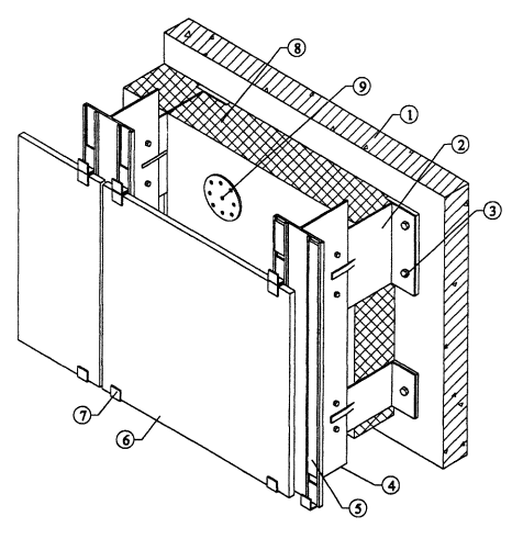 10. Состав проектно-сметной документации10.1 Рабочий проект или рабочая документация системы наружных ограждений фасадов с вентилируемым воздушным зазором включает следующие разделы: общую пояснительную записку, архитектурную часть, конструкторскую часть, конструкторскую часть по решению архитектурных деталей, специальные части (водосток, антенны, рекламу и т.п.) и сметы. 10.2. В общей пояснительной записке приводятся следующие данные: - архитектурная концепция решения фасадов здания и отдельных архитектурных элементов; - данные о конструктивном решении системы и ее элементов; - данные о решении специальных устройств на фасаде, если они имеются; - данные об эффективности энергосбережения принятых технических решений, результаты теплотехнических расчетов; - экологическая характеристика системы; - основные технико-экономические показатели системы. 10.3. Архитектурная часть включает чертежи фасадов здания, отдельных архитектурных элементов и узлов. На чертежах приводится цветовое решение фасада и его отдельных элементов. 10.4. Конструкторская часть включает чертежи всех конструктивных элементов системы, с узлами и деталями, а также полную спецификацию всех применяемых материалов и изделий. 10.5. Специальная часть включает чертежи фасадов с привязкой мест размещения специальных устройств, узлы и детали конструкций крепления этих устройств на фасаде, а также спецификацию оборудования, материалов и изделий, предусмотренных проектом. 10.6. Сметы на устройство системы составляются на основе действующих нормативов, единичных расценок, фактической стоимости оборудования и материалов, а также утвержденных заказчиком калькуляций на отдельные виды работ и элементы конструкций. 11. Технико-экономические показатели системыСтоимость системы для конкретных зданий зависит от многих факторов, в том числе, от размеров здания, архитектурного решения фасадов, оборудования и оснастки, применяемых для монтажа системы, а также от структуры подрядной организации и ее коммерческой политики. В связи с этим конкретная стоимость системы может колебаться в значительных пределах. Поэтому считает, что здесь наиболее целесообразно привести прямые затраты, т.е. стоимость отдельных элементов системы и ее монтажа (стоимость монтажа без учета стоимости лесов, люлек и других средств подмащивания) для рядового участка фасада. Поэлементная стоимость 1 м2 системы для рядового участка фасада составляет: - стоимость элементов несущего каркаса, включая крепеж - 20 $USA; - стоимость утеплителя толщиной 150 мм включая крепеж - 15 $USA; - стоимость облицовочного материала плиты «Гранитогрес» матовые - 30 $USA; - стоимость монтажа - 17 $USA. Всего на 1 м2 фасада - 82 $USA. Данные о стоимости элементов системы получены от разработчика системы. 12. Основные положения по производству работ и системе контроля качества12.1. Для выполнения работ по монтажу системы здание разбивается на захватки и определяется порядок и последовательность перемещения монтажников с одной захватки на другую. 12.2. Величина захваток и их количество в каждом случае определяются с учетом многих факторов, в том числе размеров фасадов здания, величины бригады монтажников, оснащения строительной организации оборудованием и оснасткой, условиями комплектации строительства материалами, изделиями и др. Захваткой может