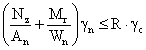 f/l = 0,77/1000 = 1/1300; что меньше предельно допустимой величины [f/l] = 1/500. 8.4.3. Расчет прочности несущего кронштейнаГеометрические характеристики вертикального сечения: hz = 150 мм; t = δ =3,5 мм; А = hz · δ = 150 · 3 = 450 мм2; Аn= (150 - 2,13) · 3 = 372 мм2 (с учетом отверстий для болтов); J = 3 · 1503/12 = 843750 мм4; Jn = 796787 мм4; W = 3 · 1502/6 = 11250 мм3; Wn = 10624 мм3; S = 3 · 1502/8 = 8438 мм3; Sn = 7970 мм3. Шаги несущих кронштейнов: lх = 0,6 м; lz = 2 м. Расчетные усилия, передаваемые от вертикального профиля: Nz = 360 Н с плечом eу = lк = 0,17 м; Ny = 2Qy = 656 H. Изгибающий момент от вертикальной нагрузки: M = Nz · eу = 360 · 0,17 = 61,2 Нм; продольная сила Ny = 656 Н; поперечная сила Qz = Nz = 360 Н. Проверка прочности несущего кронштейна на растяжение (с изгибом)По