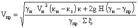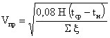 ΣRп сл - сумма сопротивлений паропроницанию слоев до рассматриваемого сечения. Roп - сопротивлений паропроницанию всей стены. По указанным формулам определяется упругость водяного пара еi, в характерных сечениях конструкции в годовом цикле. Если eτ окажется больше максимальной упругости водяного пара Е, то в данном сечении будет конденсат. Если в годовом цикле окажется увеличение накопления влаги в конструкции, то ее надо корректировать, добиваясь исключения влагонакопления в годовом цикле. 9.6.4. Определение параметров воздухообмена в прослойкеДвижение воздуха в прослойке осуществляется за счет гравитационного (теплового) и ветрового напора. В случае расположения приточных и вытяжных отверстий на разных стенах скорость движения воздуха в прослойках Vпp может определяться по следующим формулам: где: кн, кз - аэродинамические коэффициенты на разных стенах здания по СНиП 2.01.07-85 [2]; Vн - скорость движения наружного воздуха; к - коэффициент учета изменения скорости потока по высоте по СНиП 2.01.07-85; Н - разности высот от входа воздуха в прослойку до ее выхода из нее; tср, tн - средняя температура воздуха в прослойке и температура наружного воздуха; Σξ - сумма коэффициентов местных сопротивлений. Другим вариантом определения Vпp служит формула: γн, γпр - плотности наружного воздуха и в прослойке. Другой вариант определения Vпp по разности давлений воздуха на входе и выходе: ΔРΔ = ΔРвх - ΔРвых, ΔРвх и ΔРвых = Н (γн - γпр) + 0,5 γн · Vн2 (кн - кз) к, (9.8) по формуле: При расположении воздушной прослойки на одной стороне здания, можно принять кн = кз. В этом случае, если пренебречь изменением скорости ветра по высоте формула (9.6) примет вид: Формула (9.7) примет вид: В формуле (9.9) ΔР = Н (γн - γпр); γпр - плотность воздуха в прослойке. Указанные формулы применены в технической системе. При этом γ имеет размерность кг/м3. В системе СИ в числителе «g» будет отсутствовать, а «γ» имеет размерность Н/м3. Из полученных по указанным формулам скоростей движения воздуха выбирается наименьшая, корректируется с учетом потерь давления на трение по известным из курса «Вентиляция» методам (см. раздел 9.7). Расход воздуха в прослойке определяется по формуле: W = Vпр · 3600 · δпр · γпр, (9.12) где δпр - толщина воздушной прослойки; м; шириной 1 м, или площадь Fпp, м2. 9.6.5. Определение параметров тепловлажностного режима прослойкиТемпература входящего в прослойку воздуха τо определяется по формуле:
