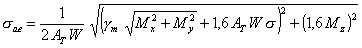 где коэффициенты ce и aR определяются по п. 7.6.1 и п. 5.2.2.1. Для среднетемпературных трубопроводов ce = 1,0. Приведенное к нормальной температуре осевое напряжение от внутреннего давления подсчитывается по формуле: