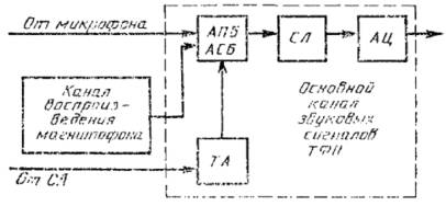 Для передачи звуковых сигналов телевидения тракт формирования программ заканчивается на выходе соединительной линии (СЛ) от АЦ. Нормы на параметры качества канала воспроизведения магнитофона приведены в приложении 5.
