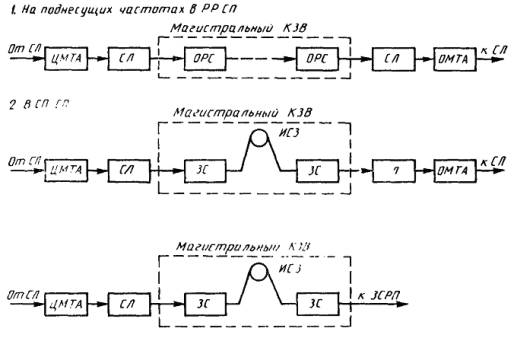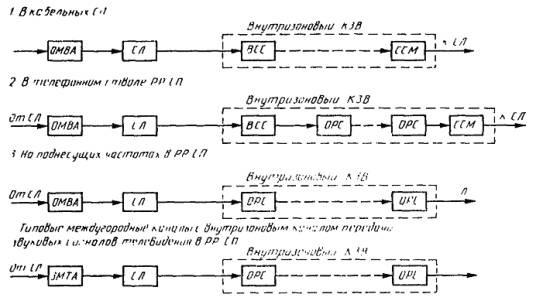 * При установке аппаратуры образования каналов звукового вещания непосредственно в оконечных междугородных вещательных аппаратных (ОМВА) или службы междугородного радиовещания (СМР) отличий в структурах; МКЗВ и КЗВ не будет.
