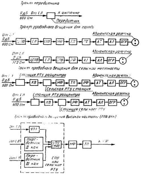 Для тракта проводного вещания определены основные варианты: два для города и два для сельской местности.